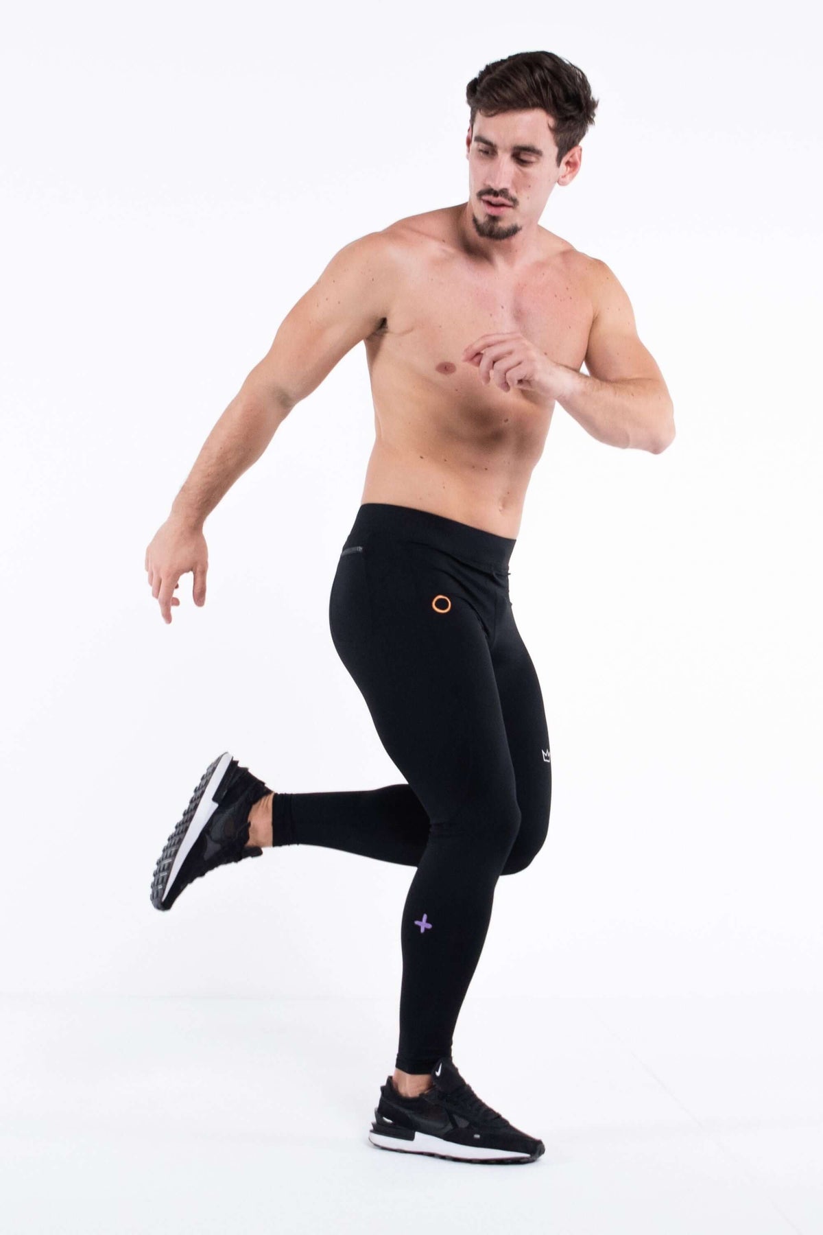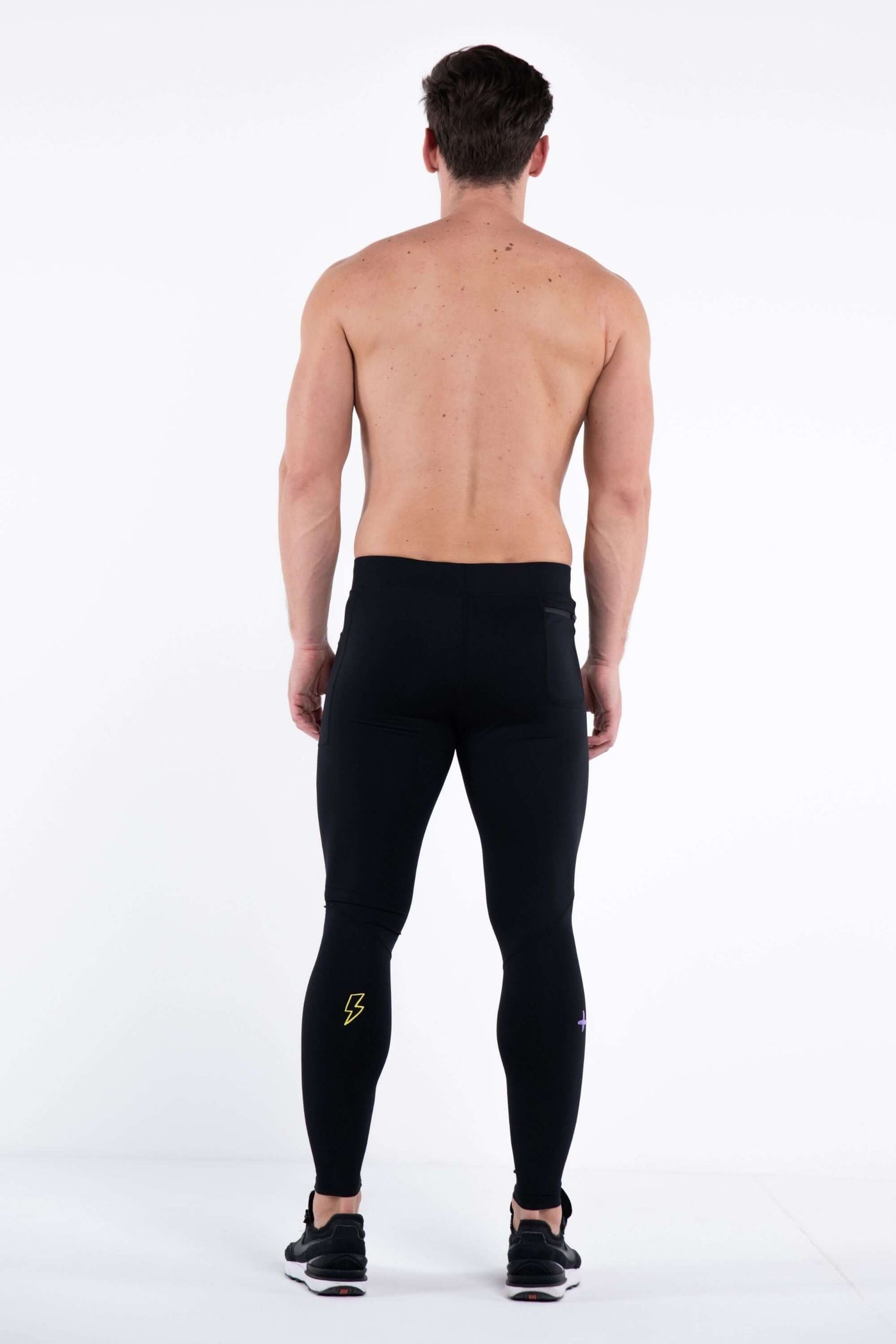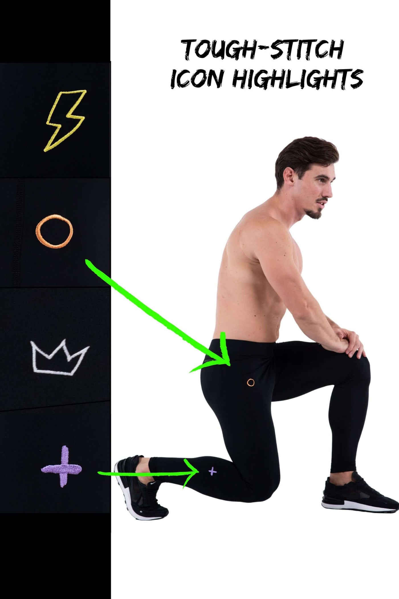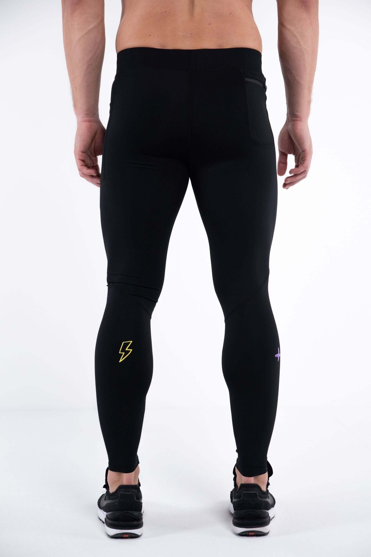 - Description: Black Men's Workout Leggings With Embroidered Icons
