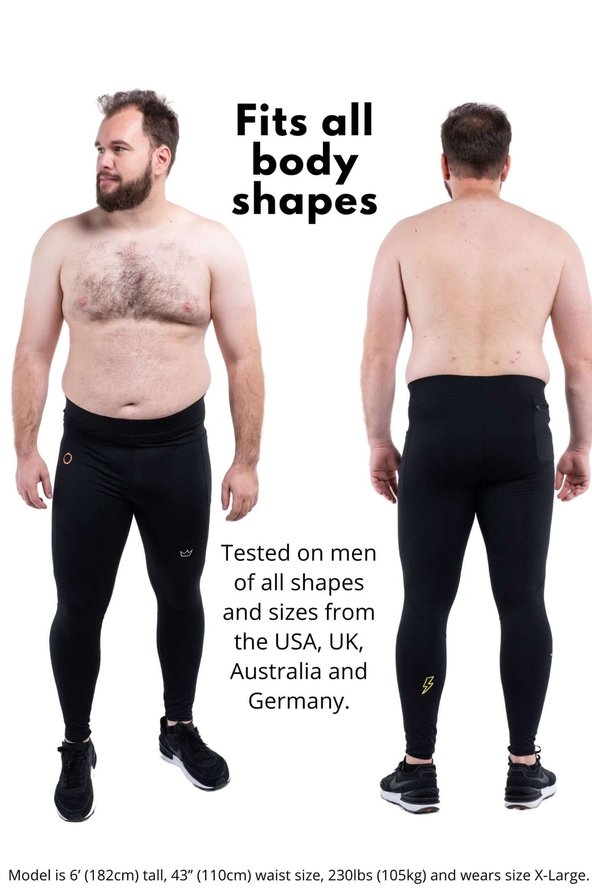 Model is 6’2’’ (189cm) tall, 34’’ (86cm) waist size and wears size Large.