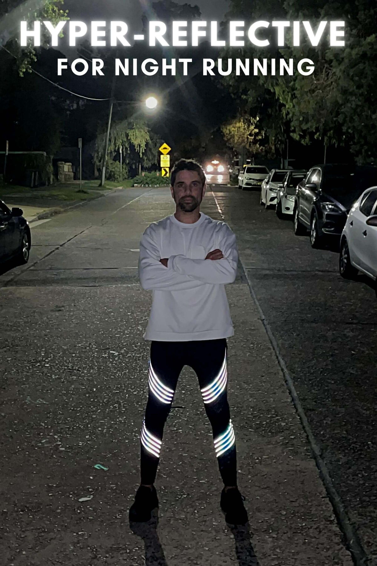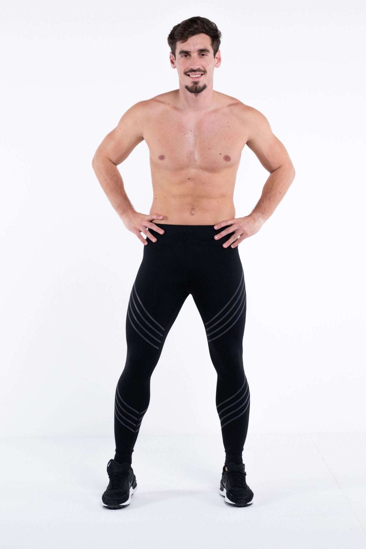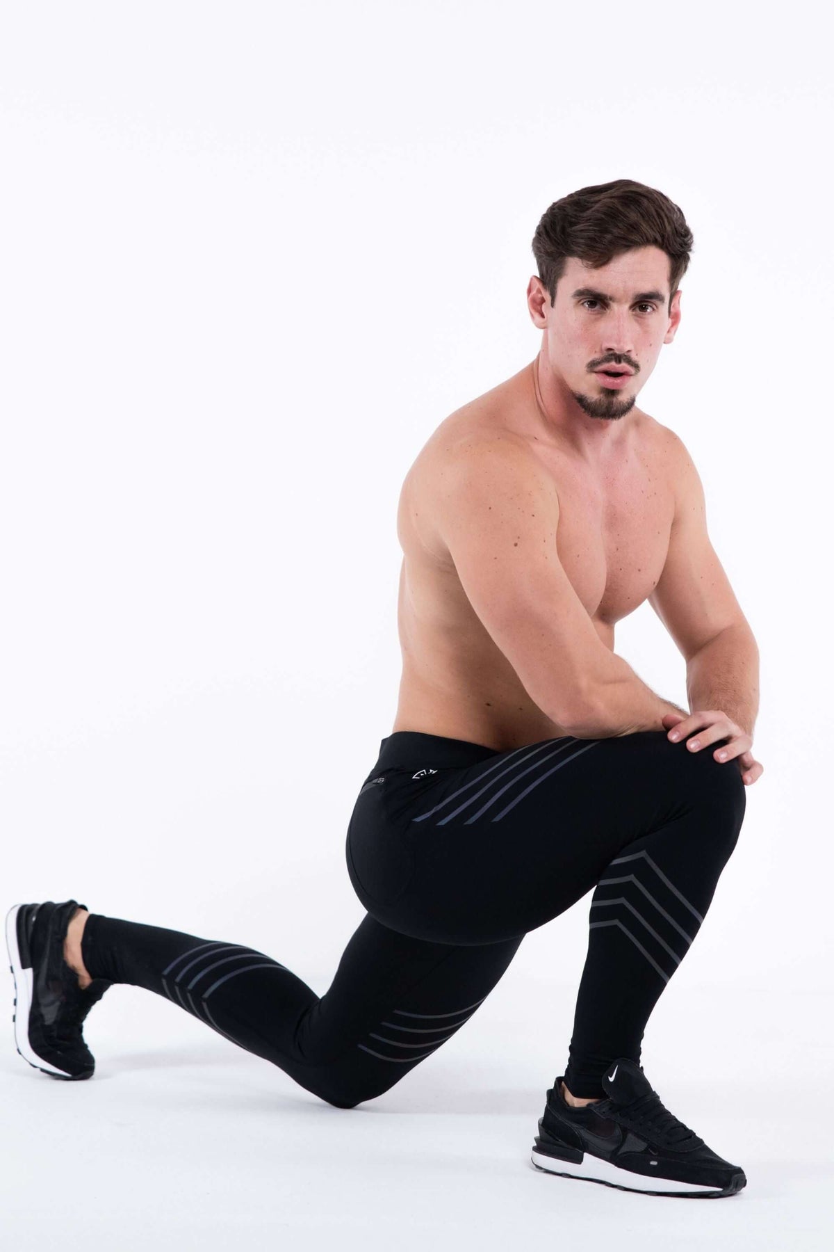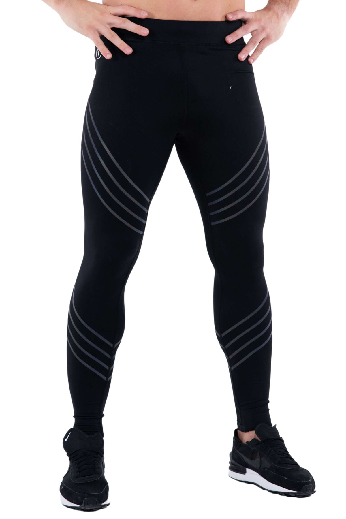 - Description: Black Men’s Workout Leggings With Reflective Stripes