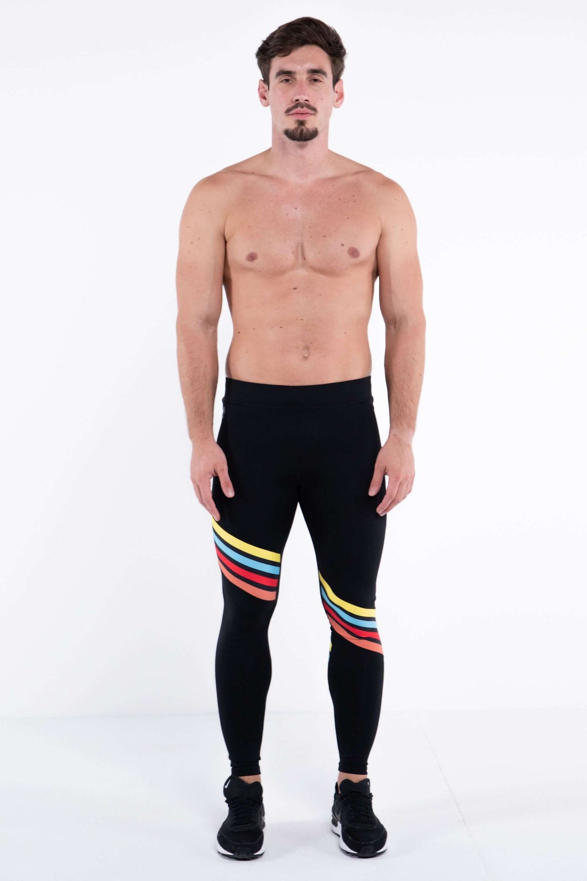 • Description: Black Men’s Workout Leggings With Color Stripes